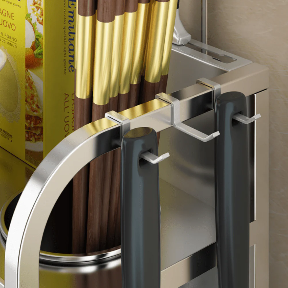 Elegant and Practical Combining functionality with a sleek design, this stainless steel rack not only organizes your kitchen but also adds a modern touch to your countertop. Its polished finish is both attractive and easy to clean.
