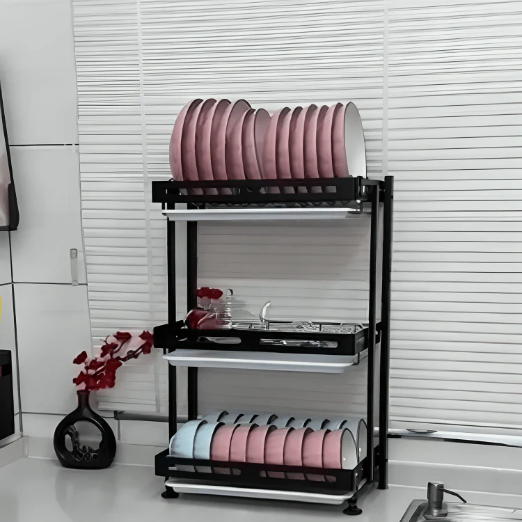 Upgrade your kitchen organization with our 3-tier dish drying rack. Designed for durability and space efficiency, it features a large capacity for drying and storing your kitchenware. The anti-rust construction and easy assembly make it a practical addition to any home, perfect for keeping countertops clean and tidy.