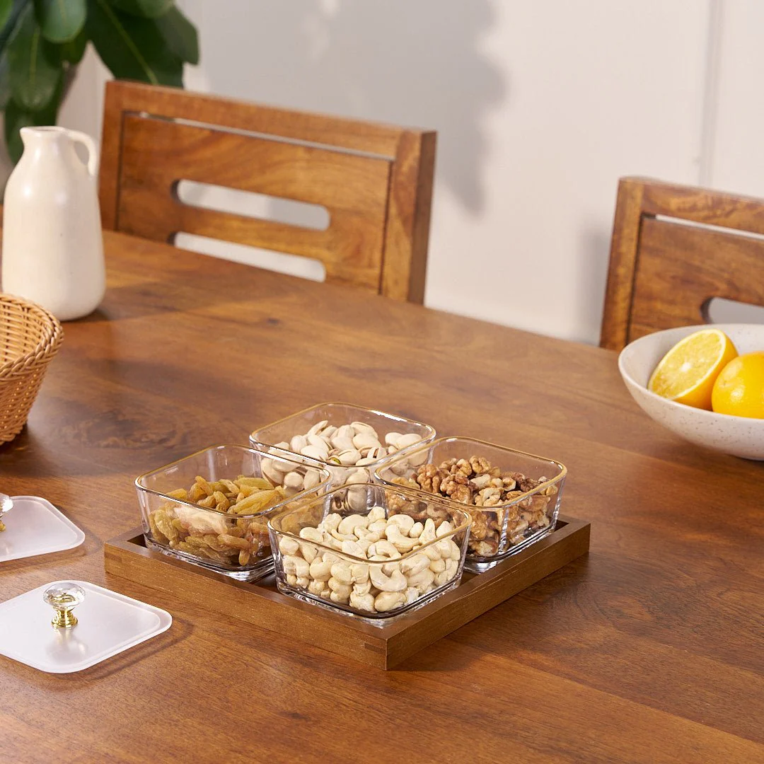 High-Quality Materials: Crafted from premium clear lead-free glass and bamboo wood, our snack box set ensures durability and elegance.