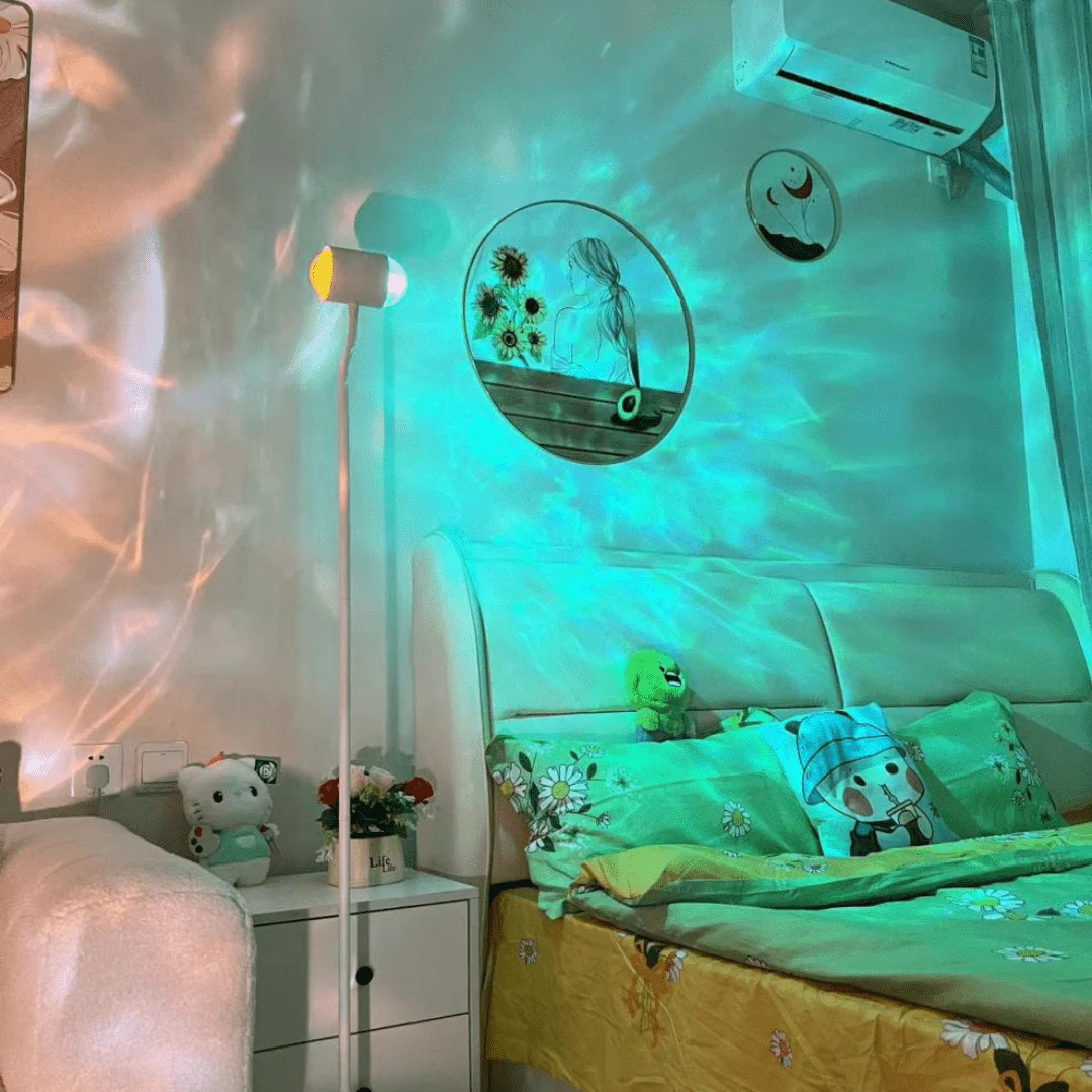 Projects mesmerizing water ripple patterns, casting a soothing ambiance ideal for relaxation, gatherings, or enhancing your room’s decor.
