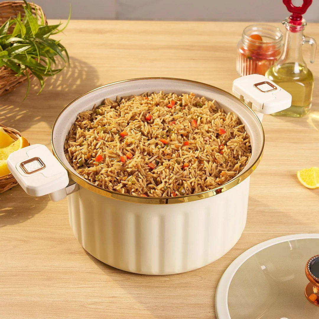 Introducing our innovative Multifunctional Non-Stick Micro Pressure Cooker, revolutionizing home cooking with its advanced micro-pressure technology. This cookware ensures precise pressure for perfectly cooked dishes, tenderizing tough meats and preserving natural flavors. Equipped with safety features like a pressure relief valve and lockable lid, it offers peace of mind while cooking. Its non-stick interior coating ensures easy cleaning, while fast and efficient cooking saves time in the kitchen.